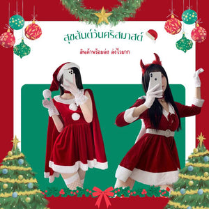 ชุดคริสต์มาส ชุดซานตี้ แซนตี้ ชุดซานตาครอส ชุดแฟนซีผู้หญิง เดรสกวาง เดรสต้นคริสต์มาส คริสมาส X-mas กำมะหยี่ แฟชั่นปาร์ตี้