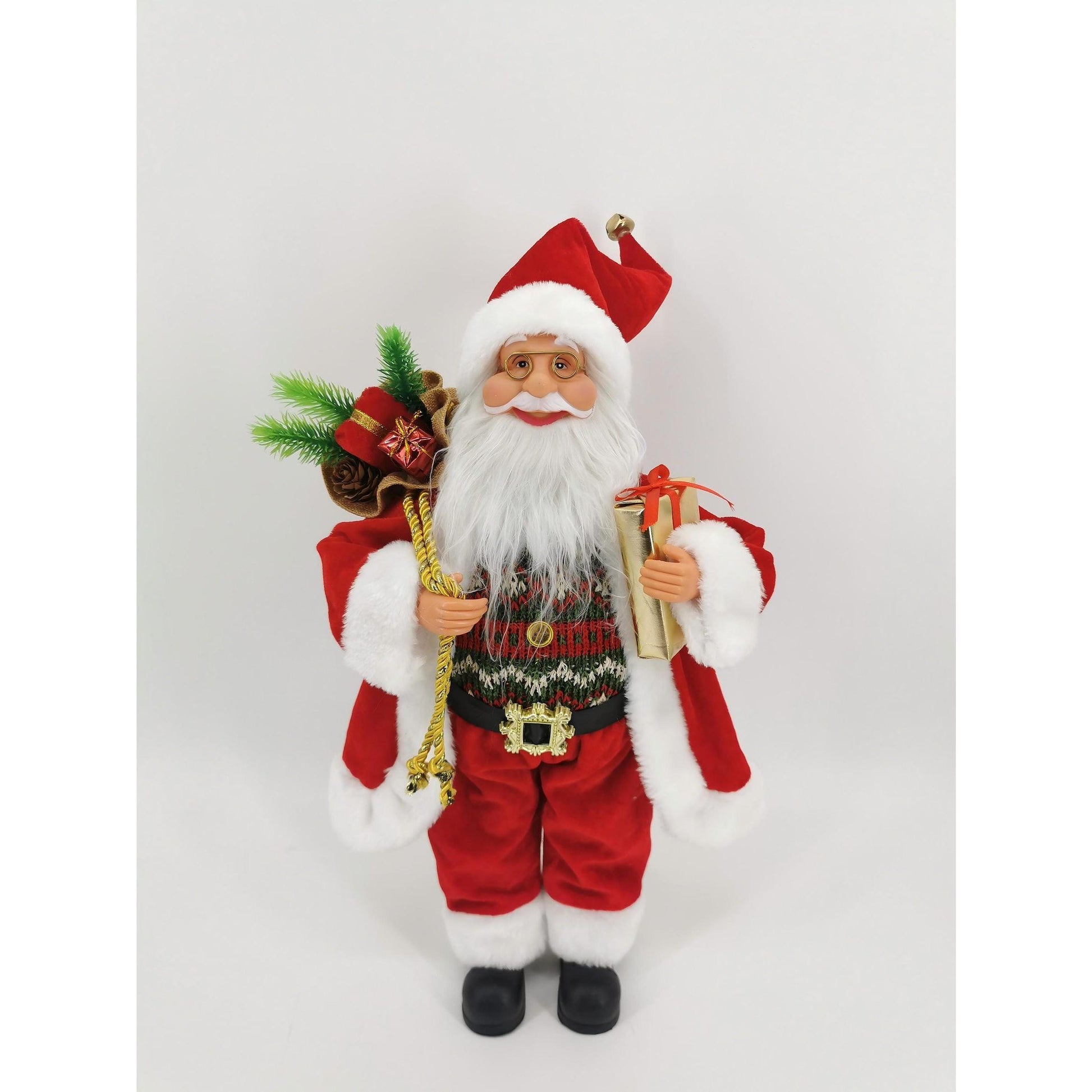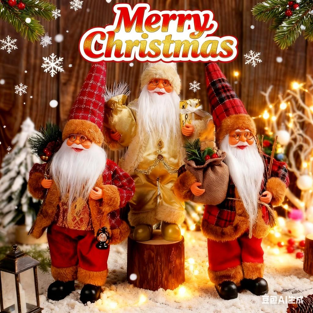 ตุ๊กตาซานต้ามีหนวดและคิ้วสีขาวชัดเจน สื่อถึงภาพซานต้าแบบนิทานอย่างแท้จริง