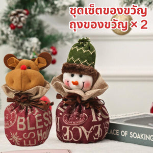 2 × ถุงหิ้วของขวัญคริสต์มาส ถัก-กำมะหยี่