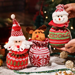 ถุงของขวัญคริสต์มาส ถักซานตา ลายเกล็ดหิมะ กวาง ซานต้า กระเป๋าแอปเปิ้ล ถุงขนม ตกแต่งคริสต์มาส ปีใหม่ ของขวัญน่ารัก สไตล์โฮมเดคอร์