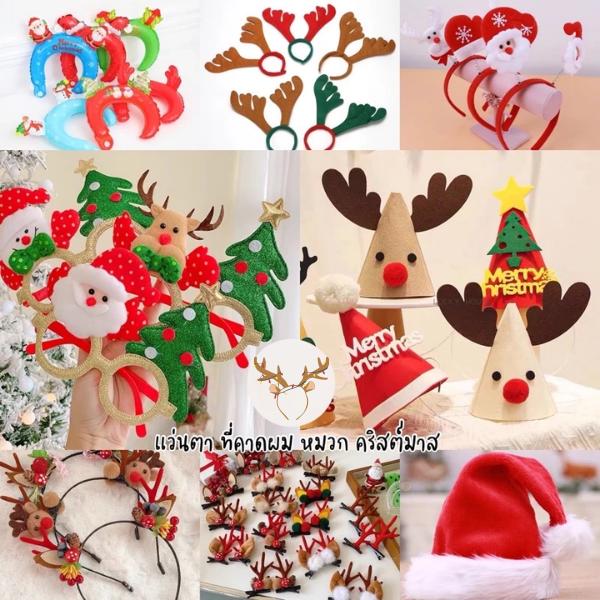 เช่น เขากวางเรืองแสง / หมวกซานต้า / ต้นคริสต์มาส / หมวกแฟนซี / กวางเรนเดียร์ / ของตกแต่งไฟ LED / ผ้าคาดหัวลายเทศกาล