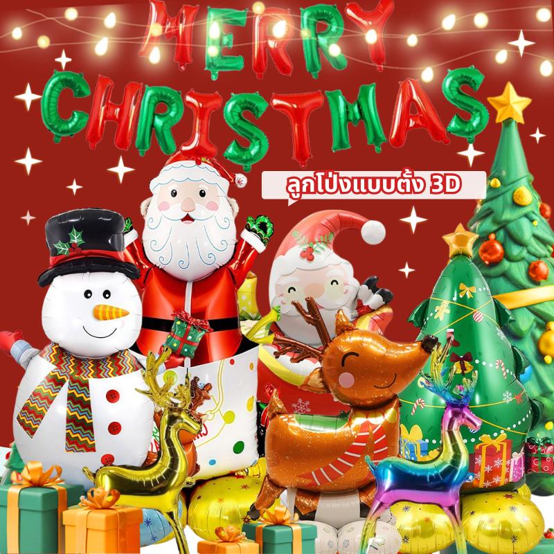 ลูกโป่งฟอยล์คริสต์มาสขนาดใหญ่ 3D ลายซานตาคลอส สโนว์แมน ต้นคริสต์มาส แบบเป่าลม ตั้งพื้นได้ เหมาะตกแต่งบ้าน งานปาร์ตี้ คริสต์มาส ปีใหม่ งานเฉลิมฉลอง ลูกโป่งคริสต์มาส