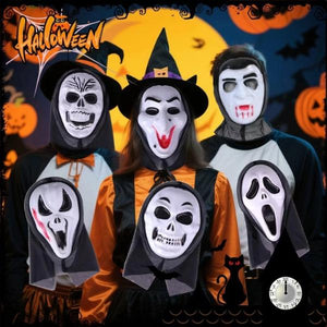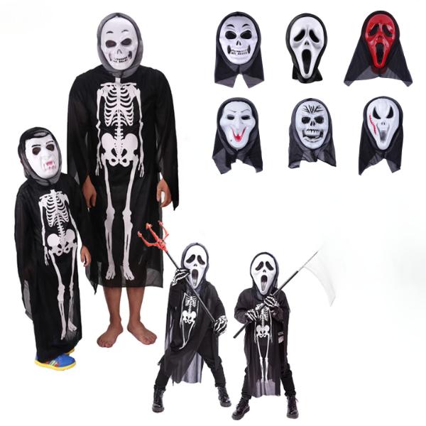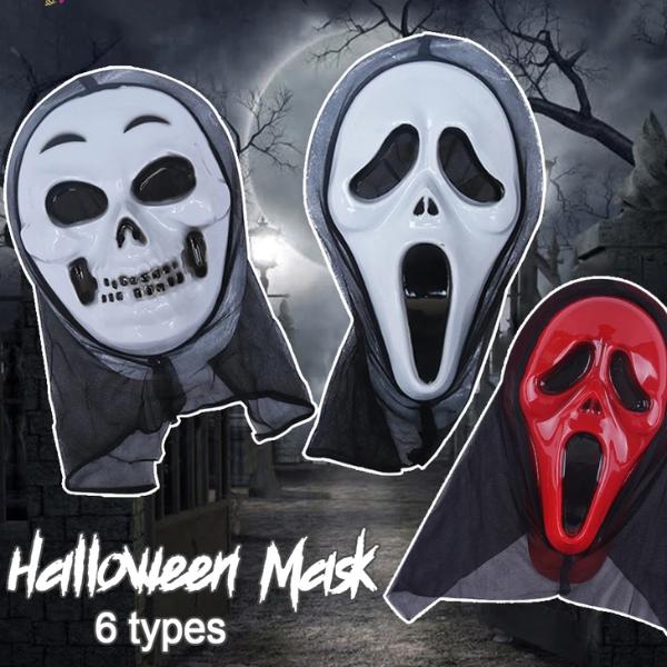 แบบ/สไตล์: ผีคลาสสิก, เจสัน, ตัวตลก, หน้ากากกรีดร้อง, แวมไพร์, ซอมบี้, มัมมี่, ปีศาจ, หน้ากากหัวเราะ, อัศวินกะโหลก, ผี, ปีศาจหญิง, สิ่งมีชีวิตกลายพันธุ์, ตุ๊กตาสยอง
