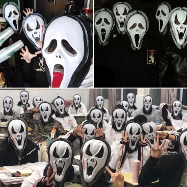 หน้ากากกรีดร้องในเงามืด, หน้ากากกะโหลกศพน่ากลัว, หน้ากากกะโหลกมีรอยแตกสีเลือด, หน้ากากกะโหลกยิ้มแปลกๆ, หน้ากากปีศาจลิ้นแดง, หน้ากากปีศาจฟันแหลม, หน้ากากตัวตลกบ้าคลั่ง, หน้ากากศพเน่าตาน่ากลัว, หน้ากากเคานต์ปีศาจตาวิปริต, หน้ากากวงเวียนชั่วร้าย, หน้ากากซอมบี้ตาโตสีชมพูน่าขนลุก, หน้ากากมัมมี่ตาโตเหลืองยิ้มน่ากลัว, หน้ากากรอยยิ้มกว้างผมยาวน่าสะพรึง |