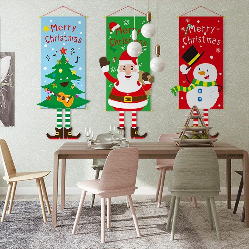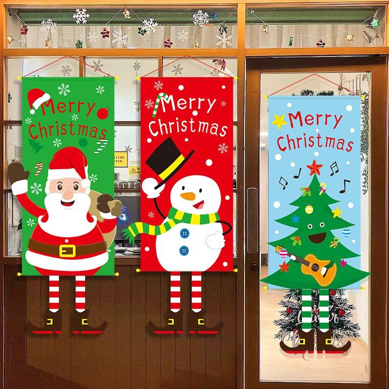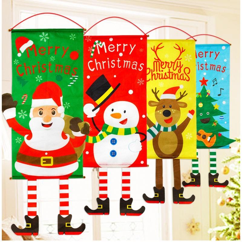 แบนนเนอร์ ตกแต่งคริสต์มาส 2026 แบบแขวน ลายซานตาครอส ถุงเท้า พวงมาลัย สโนว์แมน ของขวัญปีใหม่ ใช้ซ้ำได้ สำหรับคริสต์มาส ปีใหม่