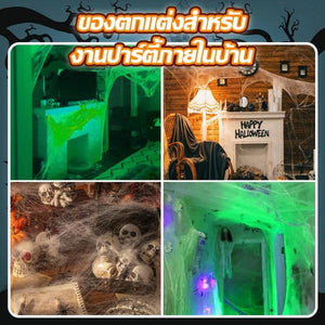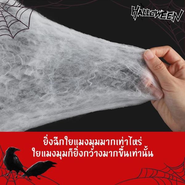 เส้นใยแมงมุมเนียนละเอียดเหมือนของจริง ช่วยสร้างบรรยากาศลึกลับและน่าขนลุก เหมาะสำหรับจัดฉากบ้านผีสิงหรือปาร์ตี้ธีมสยอง