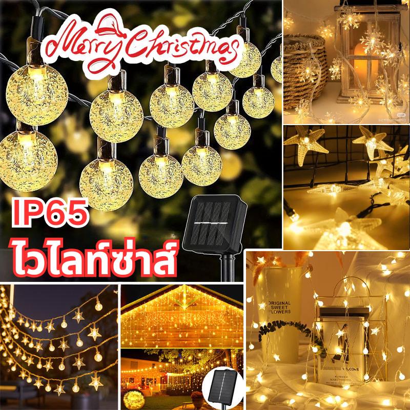 ไฟตกแต่งโซล่าเซลล์ 20/50/100 ดวง LED รูปลูกแก้ว เกล็ดหิมะ เพชร ดาวทะเล ประหยัดพลังงาน ทนแดดทนฝน เหมาะสำหรับตกแต่งสวน บ้าน งานแต่ง ปาร์ตี้ คริสต์มาส