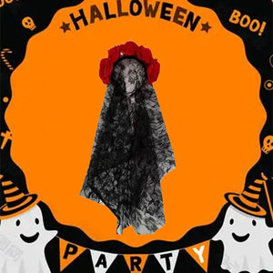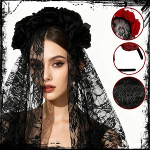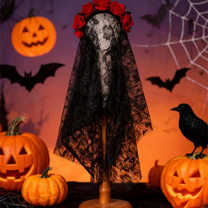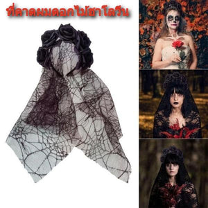 ที่คาดผมเจ้าสาวฮาโลวีน ดอกไม้ลูกไม้สีดำ ผ้าคลุมหน้าแฟชั่น คอสเพลย์โกธิค สำหรับปาร์ตี้แต่งหน้า