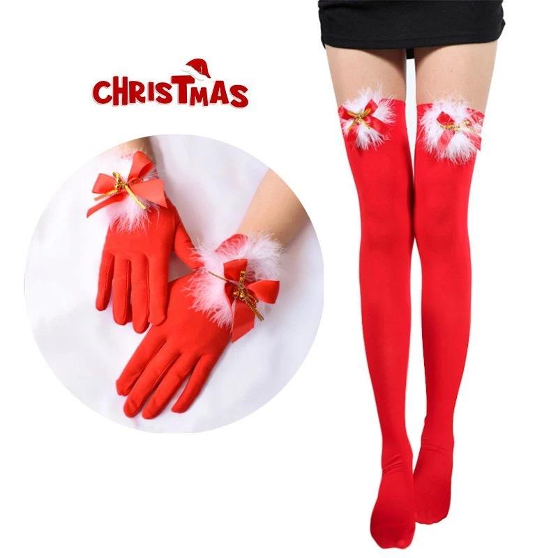 ชุดคริสต์มาสกับถุงน่อง สีแดง โบว์ ตาข่าย xmas ชุดแฟนซี ปาร์ตี้โรลเพลย์ ชุดคู่จัดส่งไม่บาดผิว พร้อมส่ง